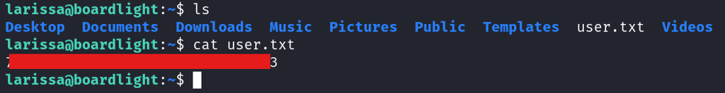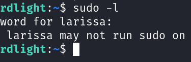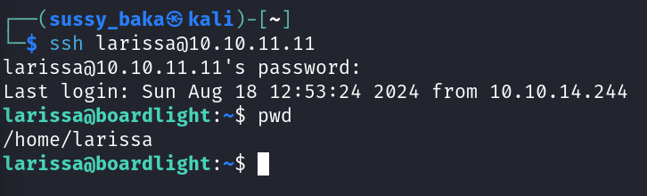 Now, lets try to login via SSH using the password found in the conf.php and the user name larissa.