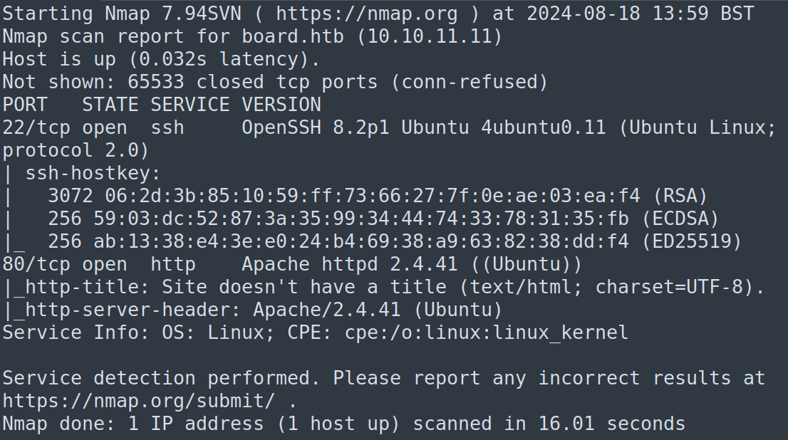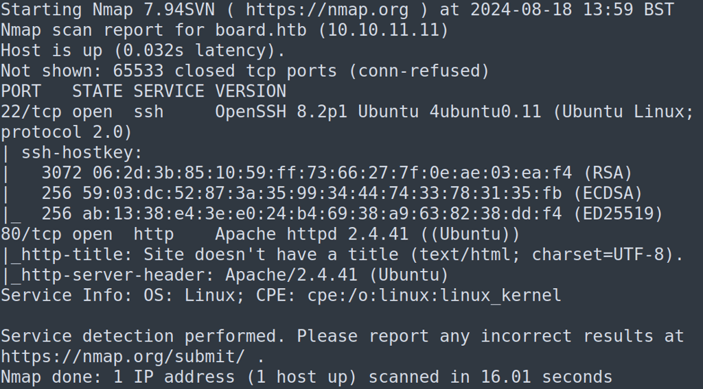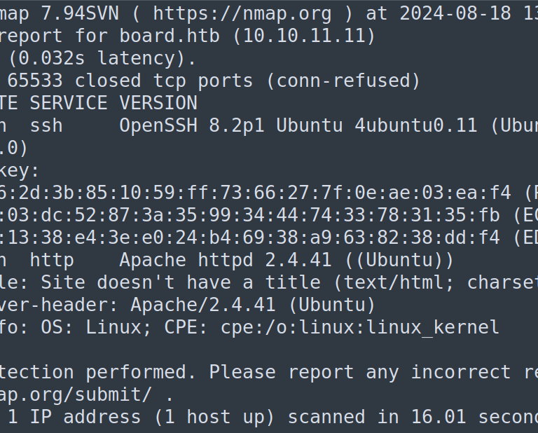 Lets us start the enumeration process by initiating a Nmap scan on the target machine.