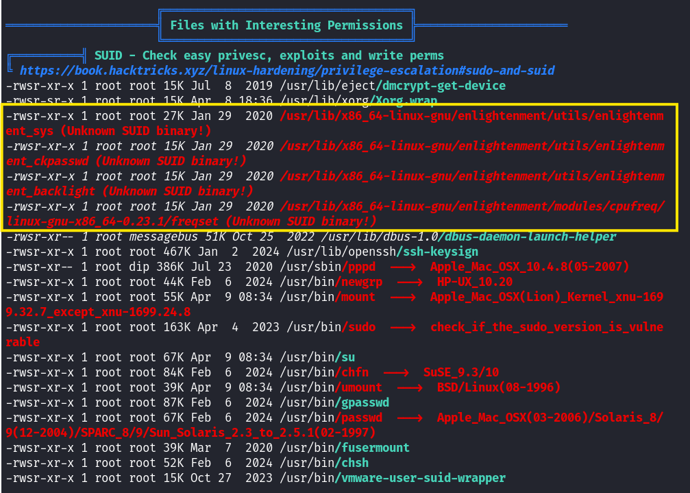 Here the enlightenment files look interesting. After a quick search we found a CVE for this utility CVE-2022-37706.
